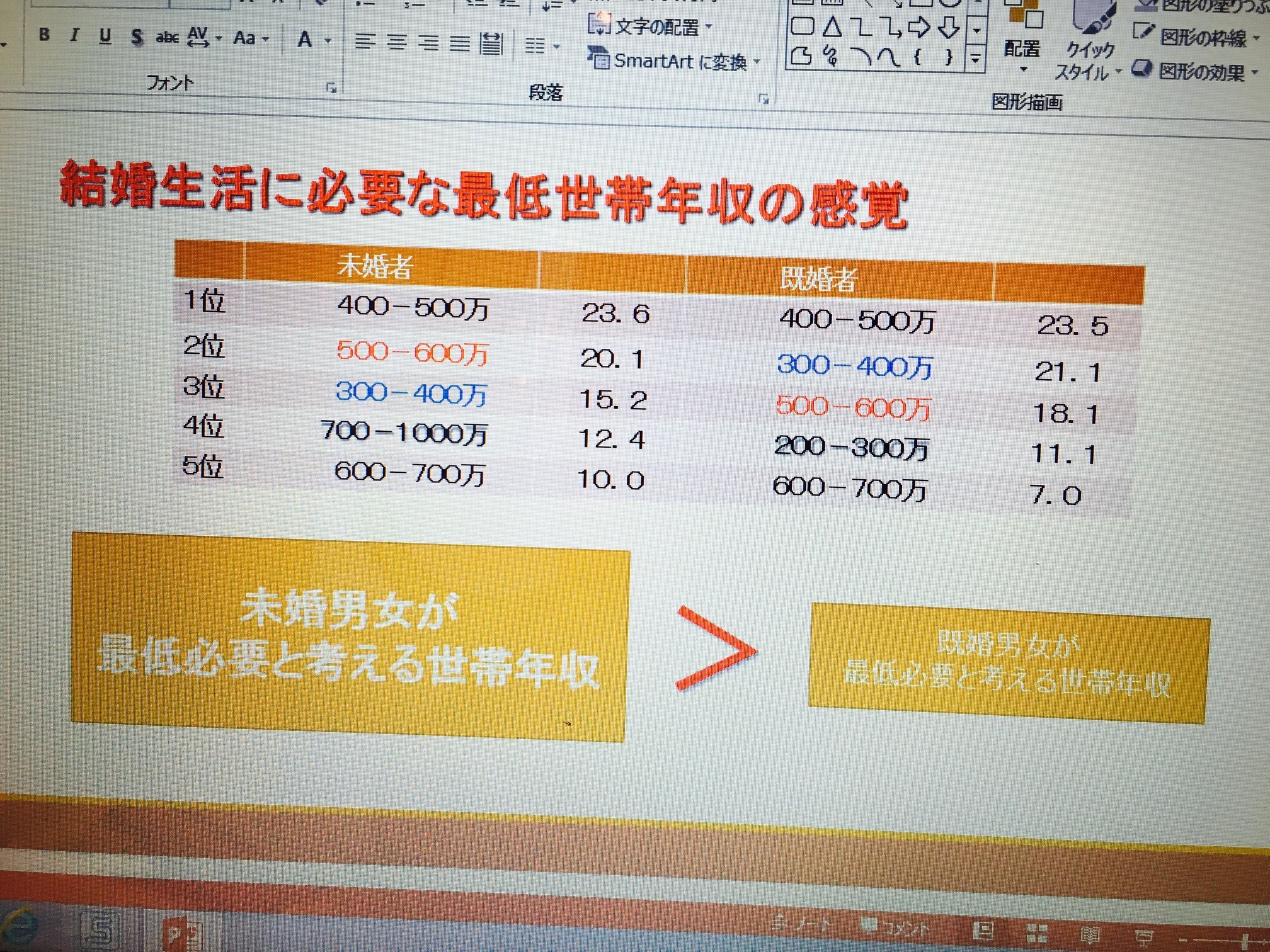 それに比べて、未婚の男女は、500〜600万も必要だと。