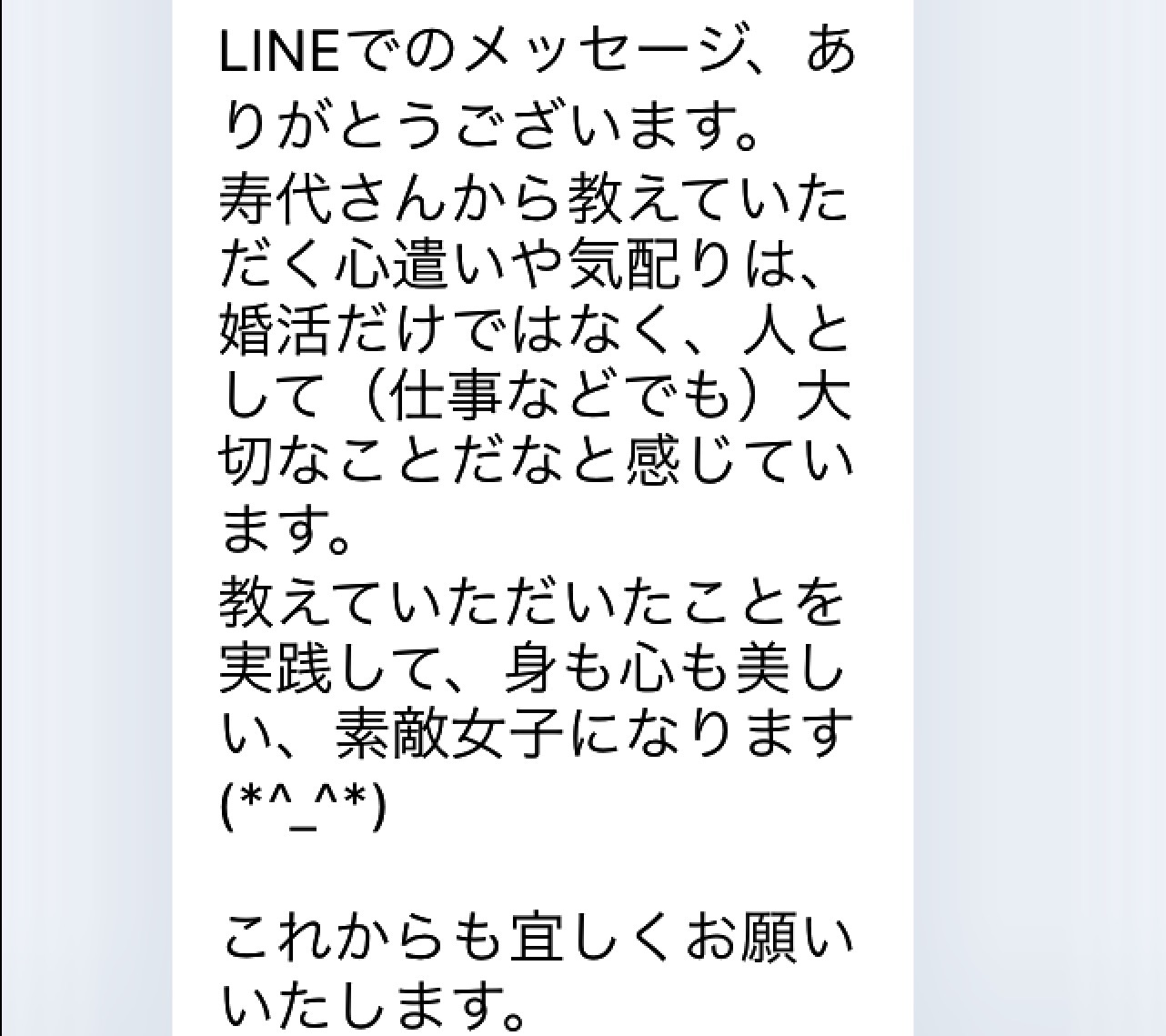 過去の笑い屋婚活パーティーご参加女性がくださいました!