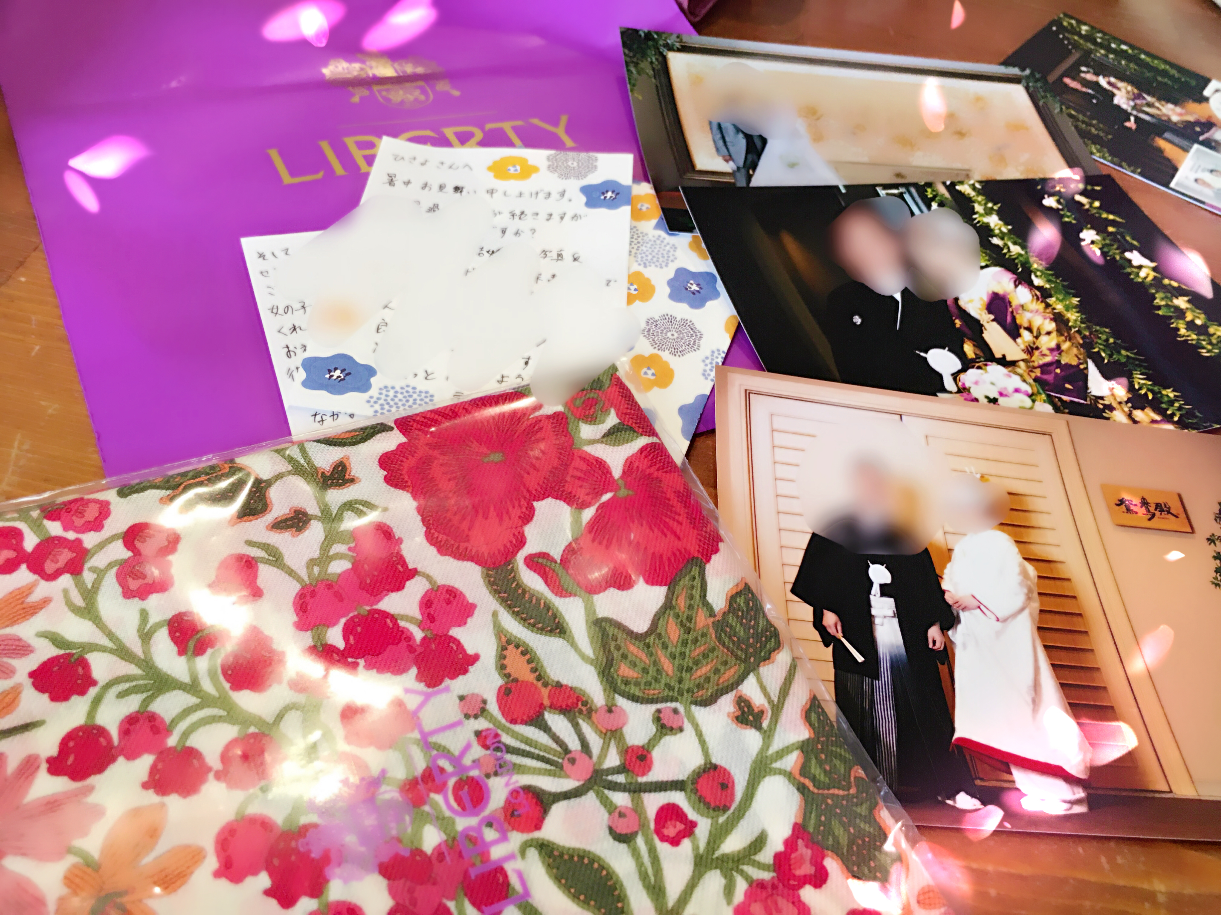 先日、新婚旅行のお土産と沢山の挙式のお写真と