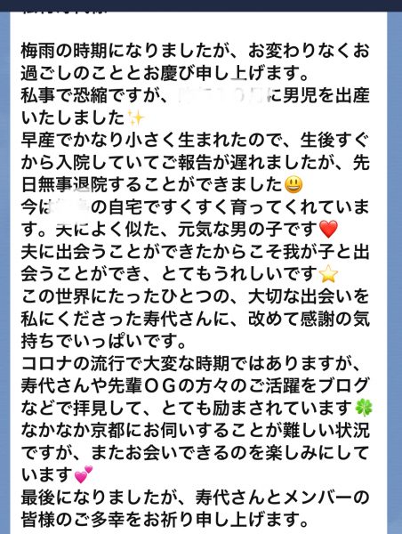 寿代さんとメンバーの皆様のご多幸をお祈り申し上げます