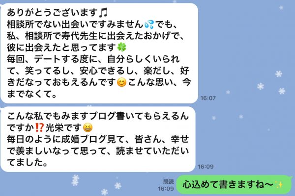 たくさんの嬉しい感謝の言葉をありがとうございました