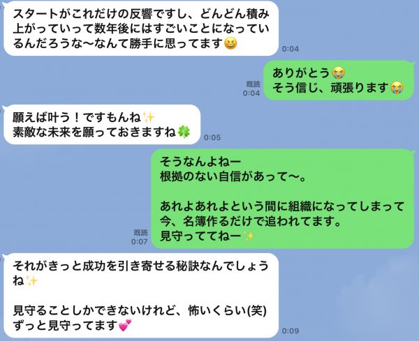 先程は、うちのOG仲人の里佐ちゃんとラインしててね、
