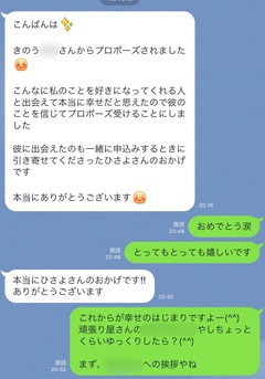 ブライダルサロンHISAYOではプロポーズ成立の報告、結納無事終了の報告、