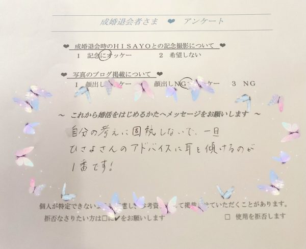 ご入会からあっという間に成婚退会となられました